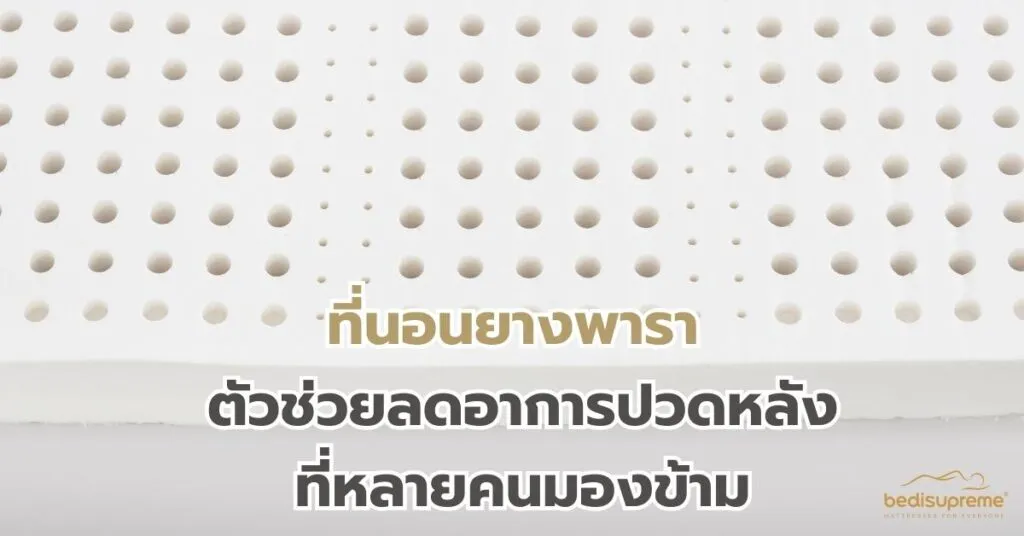 อาการปวดหลังกลายเป็นปัญหาใหญ่ของคนยุคนี้ ทั้งจากการนั่งทำงานเป็นเวลานาน การขับรถ หรือแม้แต่การใช้ชีวิตประจำวันที่ผิดท่าผิดทาง แต่รู้หรือไม่ว่าสาเหตุหนึ่งที่หลายคนมองข้ามไปคือ ที่นอน ที่เราใช้ทุกคืน ที่นอนที่ไม่ได้มาตรฐานหรือไม่รองรับสรีระอย่างเหมาะสม อาจเป็นต้นเหตุสำคัญที่ทำให้อาการปวดหลังของคุณไม่หายขาด ซึ่งในปัจจุบันมีวัสดุที่ช่วยแก้ปัญหานี้ได้เป็นอย่างดี นั่นก็คือ ที่นอนยางพารา