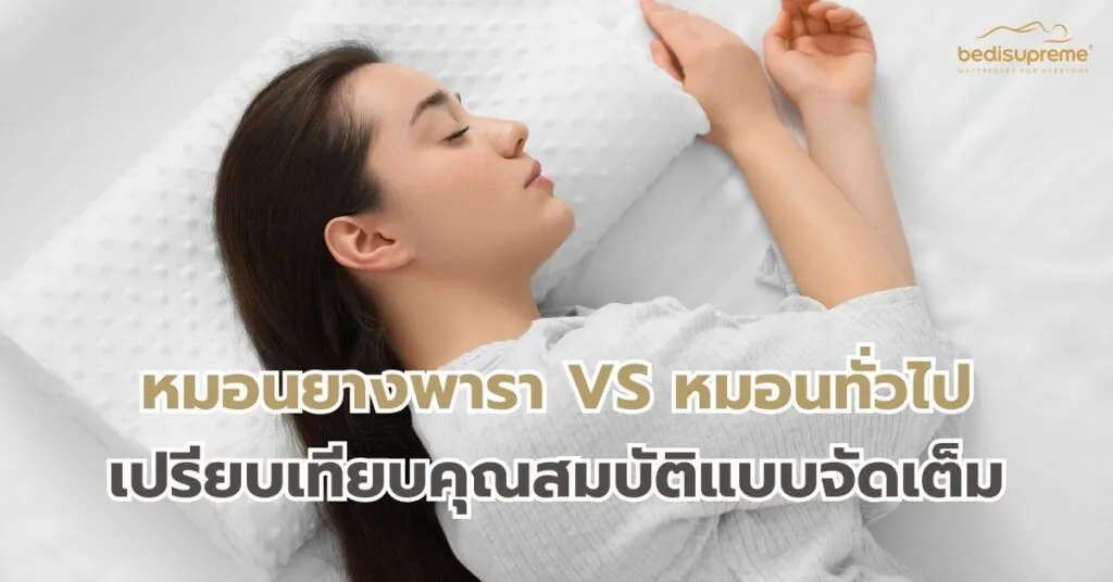 การเลือกหมอนที่เหมาะสมเป็นสิ่งสำคัญที่ส่งผลต่อคุณภาพการนอนหลับ และสุขภาพของคอ และกระดูกสันหลัง ปัจจุบันหมอนยางพารากำลังได้รับความนิยมเพิ่มขึ้นอย่างต่อเนื่อง แต่หลายคนยังสงสัยว่าหมอนยางพารามีความแตกต่างจากหมอนทั่วไปอย่างไร คุ้มค่ากับราคาที่สูงกว่าหรือไม่ บทความนี้จะพาคุณไปเจาะลึกเปรียบเทียบคุณสมบัติของหมอนทั้งสองแบบอย่างครบถ้วน เพื่อช่วยให้คุณตัดสินใจเลือกหมอนที่เหมาะกับการนอนของตัวเองได้ง่ายขึ้น