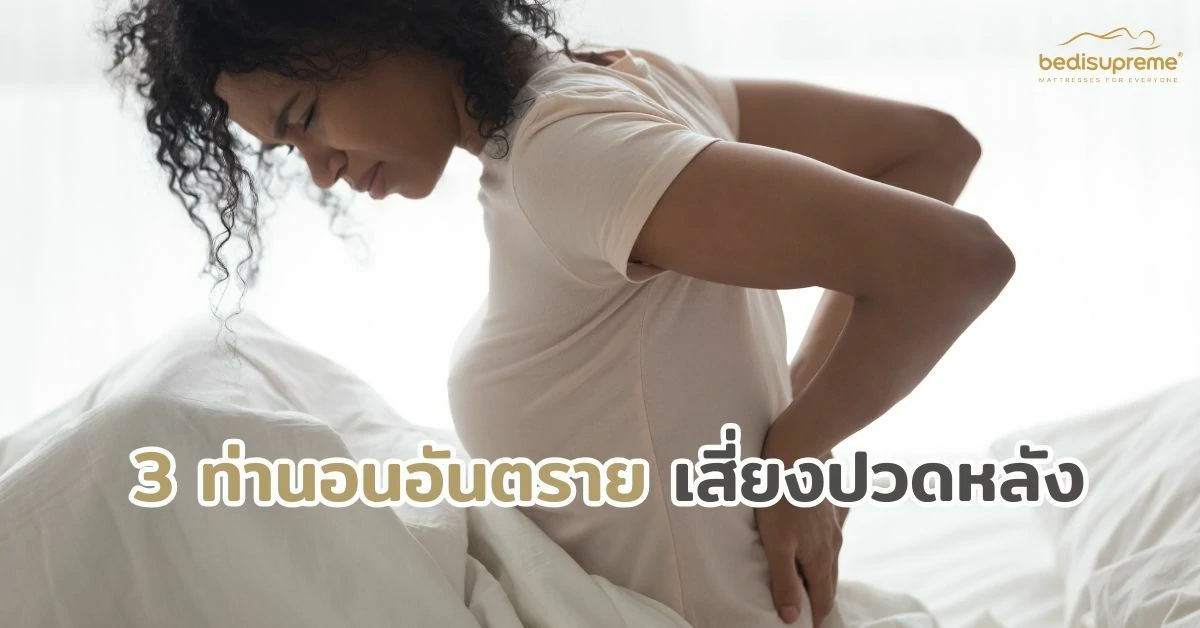 การนอนหลับอย่างเพียงพอ และนอนใน ท่านอน ที่ถูกต้องมีความสำคัญต่อสุขภาพร่างกาย โดยเฉพาะบริเวณกระดูกสันหลัง คอ บ่า ไหล่ เป็นอย่างยิ่ง การนอนในท่าที่ไม่เหมาะสมเป็นเวลานานอาจนำไปสู่ปัญหาอาการปวดหลังได้ ในบทความนี้เราจะมาดู ท่านอน 3 ท่าที่อันตราย และเสี่ยงต่อการเกิดปัญหาอาการปวดหลัง