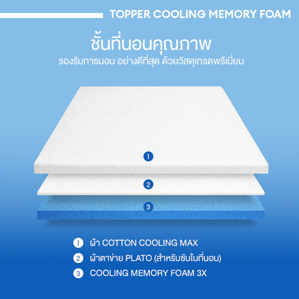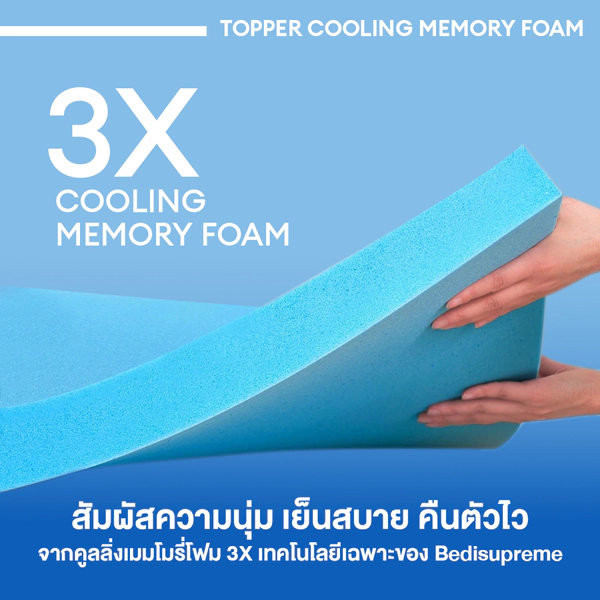 ท็อปเปอร์คูลลิ่งเมมโมรี่โฟม Cooling memory foam (Visco Elastic Foam) เทคโนโลยีจากนาซ่า หุ้มผ้านุ่ม Cotton Cooling Max
