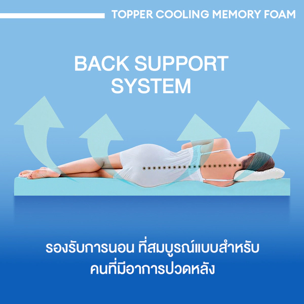 ช่วยลดแรงกดทับ เพิ่มความเย็น และมอบการนอนหลับที่ผ่อนคลายตลอดคืน เหมาะสำหรับใช้วางเสริมบนที่นอนทุกประเภท