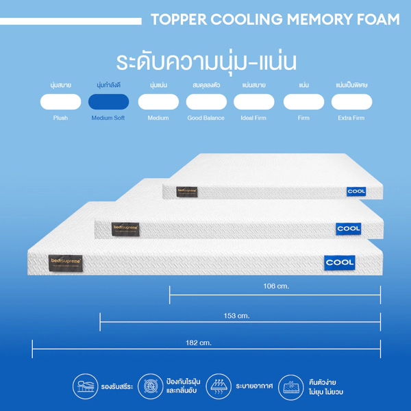 ยกระดับการนอนให้สบายยิ่งขึ้นด้วยท็อปเปอร์คูลลิ่งเมมโมรี่โฟม ที่ออกแบบมาเพื่อรองรับสรีระอย่างแท้จริง